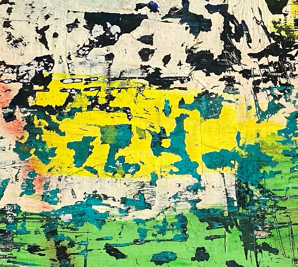 Acrylic, pastels and spray on canvas